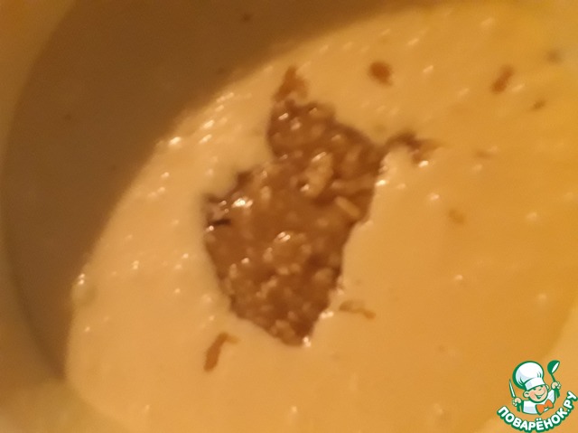 • Соединяем маслянно- яичную смесь с бананово- ореховой и тщательно всё перемешиваем.