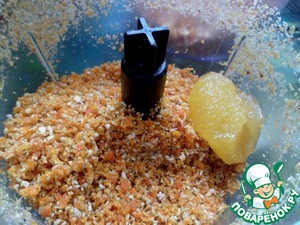 Пробить до мелкой крошки, добавить лимонный сок и густой мед.