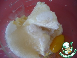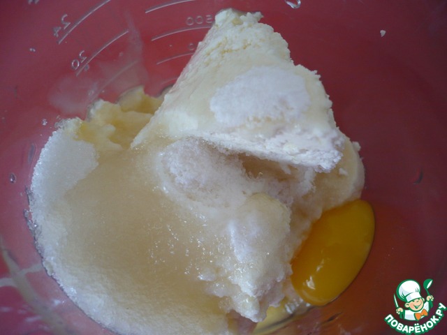 • Добавьте к бананам творог, яйца, сахар и ванилин.