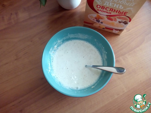 Насыпала в смесь овсяных хлопьев и дала им 5 минут постоять, чтобы разбухли.