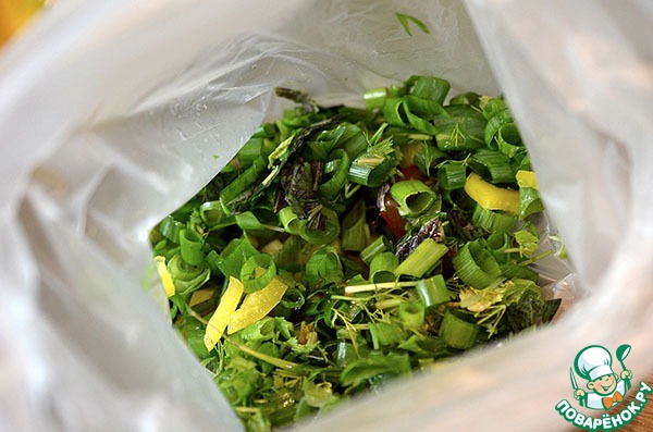 [+4]Из зелени взяла кинзу, зелёный лук и укроп (по 30 г). Варила в пакете для выпечки.