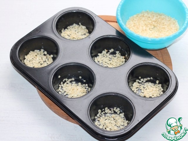 • 4. Смазываем форму для запекания сливочным маслом и посыпаем дно пшенными хлопьями (1,5 ст. л.).