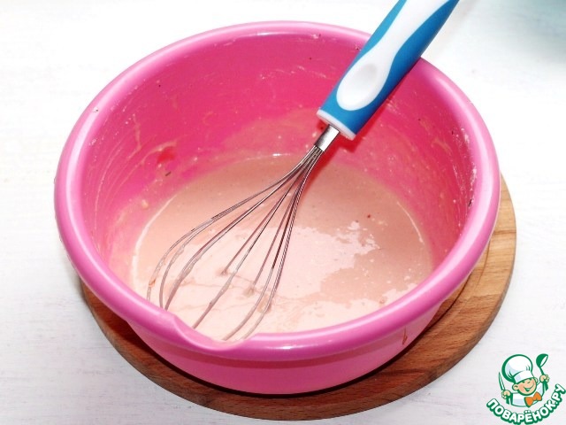 • 7. Приготовим сметанную заливку. Взбиваем венчиком: кетчуп, сметану, растительное масло и 2 куриных яйца. Добавляем соль и молотый перец.