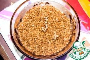 Гречку заливаем небольшим количеством теплой воды и оставляем на 30-40 минут.
