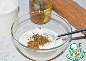 Смешать майонез (у меня домашний), йогурт и горчицу.