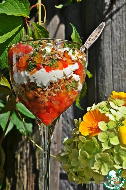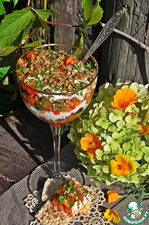 Оригинальная идея овощного трайфла с гранолой из злаковых хлопьев - отличное решение! Почему трайфл обязательно должен быть десертом? Предлагаю вам вариант несладкого трайфла с сочными сезонными томатами, ароматным болгарским перцем и невероятно вкусной злаковой гранолой!