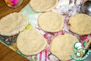 Руки смазываем растительным маслом и из каждого кусочка теста формуем лепешку, толщиной не более 1см. Края делайте потолще, серединку потоньше. -