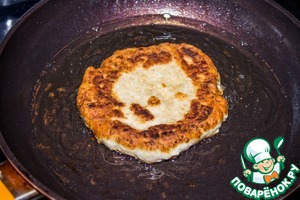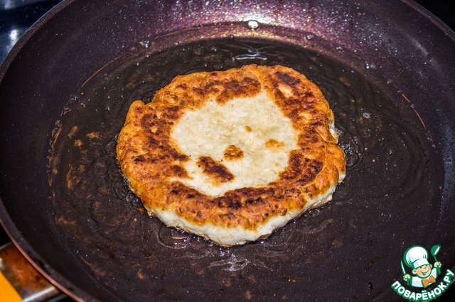 В раскаленное масло опускаем лепешки и жарим по 2 минутки с каждой стороны.