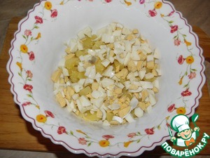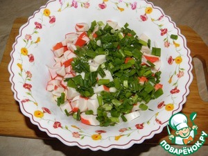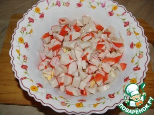 • Крабовые палочки (у меня краб. мясо) нарезать шайбочками