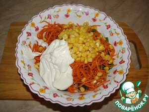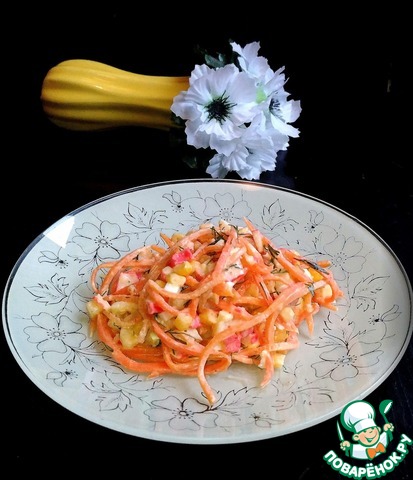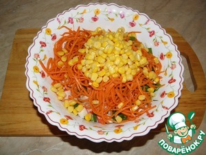 Раньше почему-то проходила мимо рецептов, где есть морковь по-корейски, а этот салат заинтересовал. И не зря! Очень вкусный! Вот ни убавить, ни прибавить