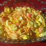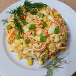 Очень люблю салат с крабовыми палочками и корейской морковкой. Очень часто его делаю осенью и зимой. Но с картошкой не разу не пробовала. Надо сделать