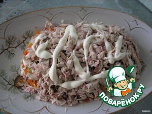 2 – морковь, подсолить и хорошо смазать майонезом,