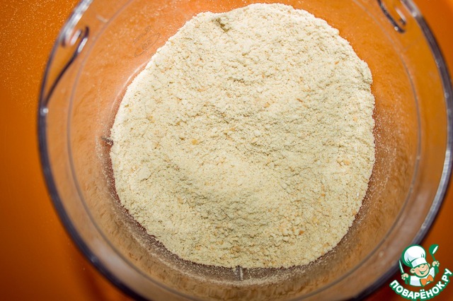 Печенье измельчаем в мелкую крошку. Блендер отлично с этим справляется.