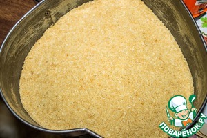 • Выстилаем полученной масляной крошкой дно разъемной формы диаметром 20 см.
