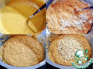 Добавила целые овсяные хлопья и налила масло. -