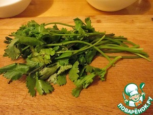 Теперь кинзу, режем вместе со стебельками, в них самый вкус.