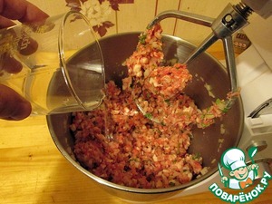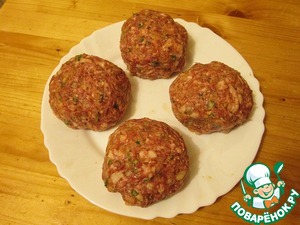 Фарш готов, отправляем его в холодильник, минут на 15. Достаем и делим на порционные куски. Скатываем в шарик и очень тщательно его уплотняем, перекидывая из руки в руку, а потом еще как снежок формуем с усилием.