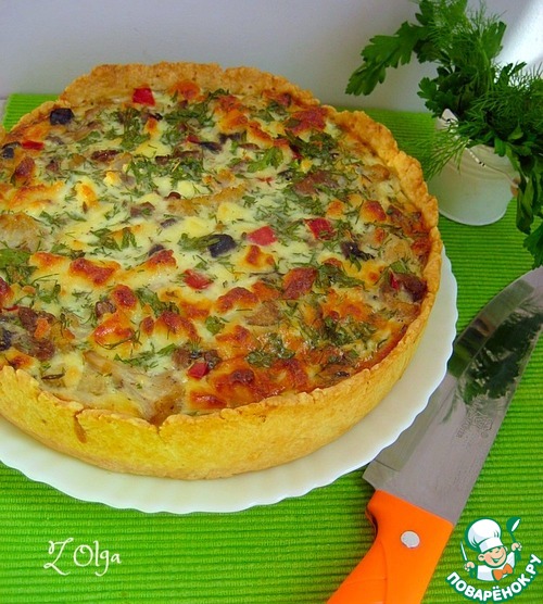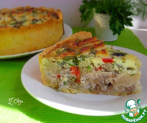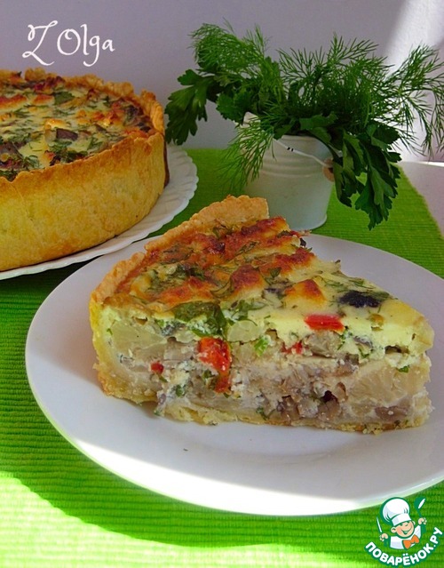 Сытный, насыщенный овощной пирог с тонким, хрустящим тестом и начинкой из цветной капусты, грибов, болгарского перца и адыгейского сыра!