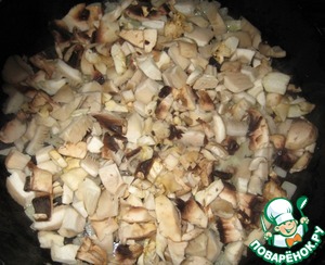 Добавить нарезанные небольшими кусочками грибы (у меня вёшенки и шампиньоны). Обжаривать на небольшом огне, помешивая 4-5 минут.