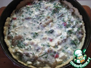 Зелень мелко нарубить, добавить в яично-сметанную заливку.