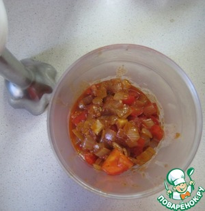 Перекладываем овощи в чашу блендера и измельчаем в пюре.