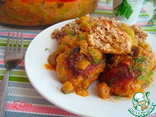 Котлеты из двух видов фарша в насыщенном овощном соусе из помидор, перца, кабачков и баклажан станут дополнением к любимому гарниру для сытного, семейного ужина! Спасибо за идею рецепта кулинару sergey_pozhar!
