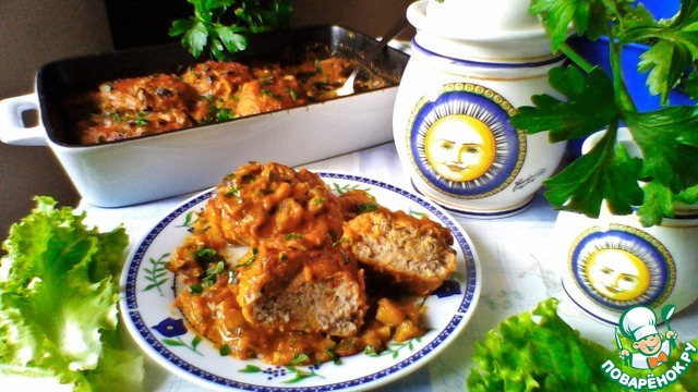 Заливаем котлеты, которые уже лежат у нас в жаропрочной форме, овощным соусом.