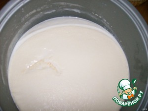 Молоко было холодное, поэтому поставила на 15 мин на режим Мультиповар, температура 35 градусов. Показалось мало, поставила еще на 20 мин на 40 градусов. Эта операция позволила избежать 10-часового ожидания - после второго подогрева как раз получился "один большой довольно плотный сгусток, слегка отделяющийся от стенок посуды"