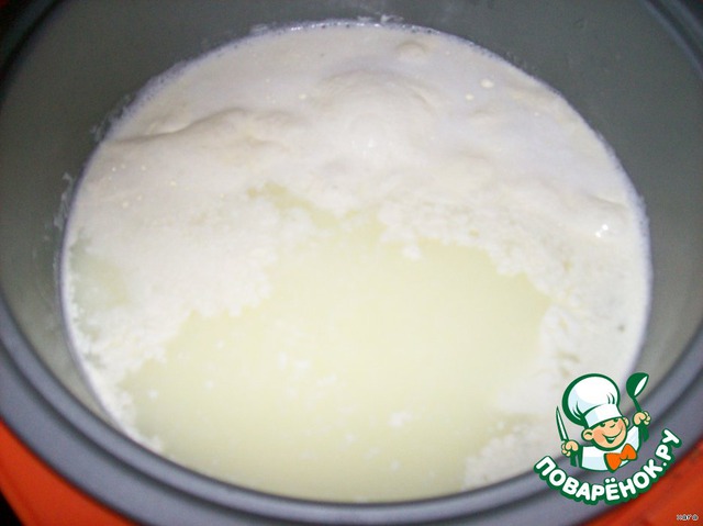 Дальше по рецепту, но второго нагревания на самом деле так и не понадобилось (может и нужно было, да у меня терпения не хватило). Масса стояла в закрытой мультиварке всю ночь, за которую, кстати, так до конца и не остыла. Утром совесть взяла свое и я решила все-таки провести второй нагрев... Сил хватило только на 24 минуты (температура 80 градусов) - после чего организм громко и однозначно заявил, что он голоден.