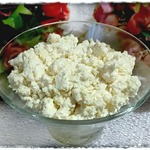 Творог делаю из магазинного молока, створаживаю в кастрюльке до плотной массы, режу ножом на квадратики, затем ставлю на огонь прогревать, не доводя до кипения. Даю остыть и на дуршлаг.
