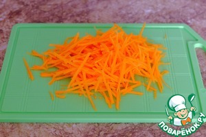 Морковь (сырую) натереть на мелкой корейской терке.