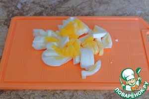 Яйца (3 шт.) отварить порезать брусочками.