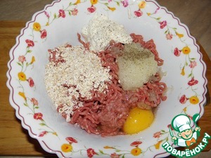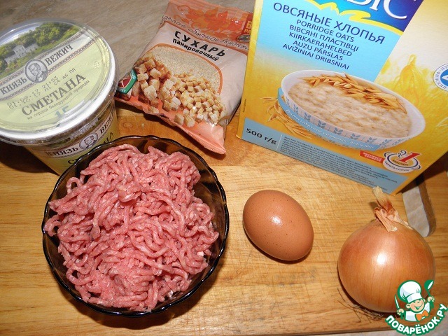Мясо пропустить через мясорубку (лучше с мелкой сеткой). Добавить овсянку, сметану, натереть на мелкой терке луковицу, вбить яйцо, посолить и поперчить по вкусу