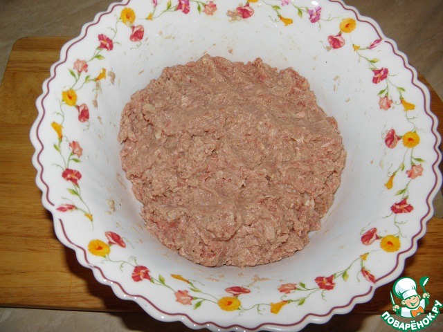 - Фарш мясной (говядина+свинина; можно 3 вида мяса) — 1 кг