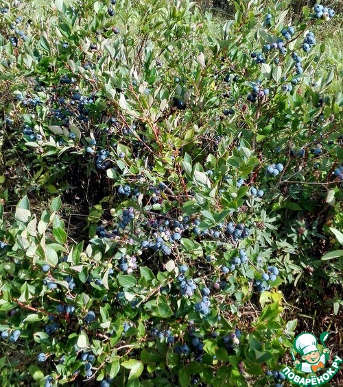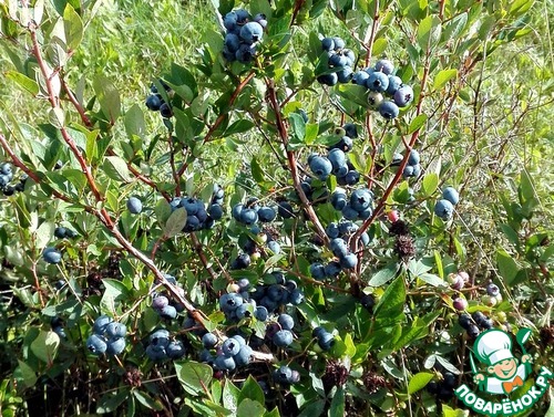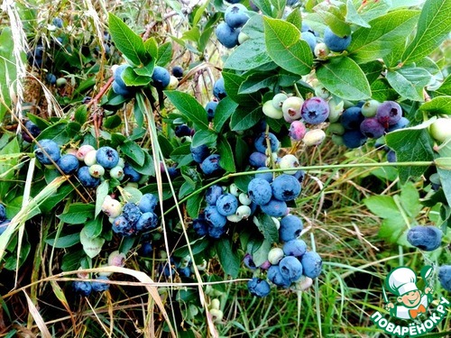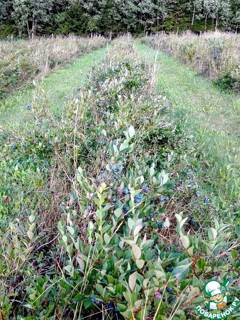 Крупная черника. Она отличается от лесной. Когда её собираешь, руки и рот не пачкаются. Ягода сладкая, а внутри белая.