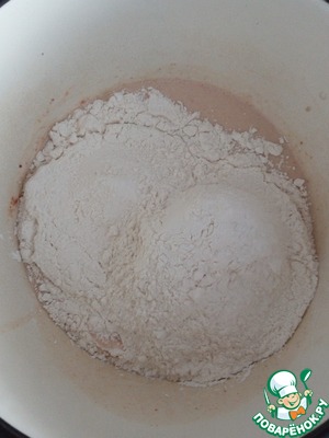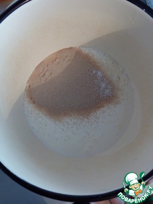Дрожжи с солью всыпаем в теплый кефир. Оставляем до активации дрожжей.