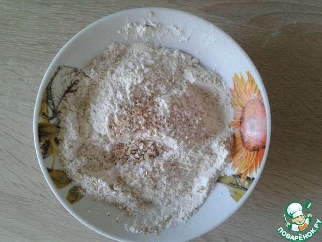Смешиваем муку, отруби, соду в отдельной посуде.
