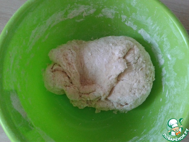 Вливаем ряженку с яйцом и солью в сухую смесь и вымешиваем мягкое тесто.