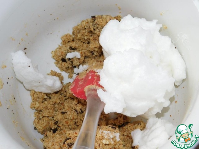 Отдельно взбиваем в пену белок и вмешиваем его в тесто.