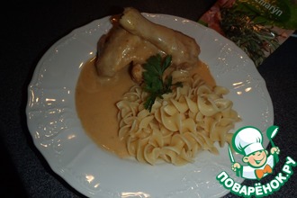 • 11. Положите курочку со сливочным соусом в сервировочное блюдо и подавайте к столу. К этому блюду можно подать кетчуп.
