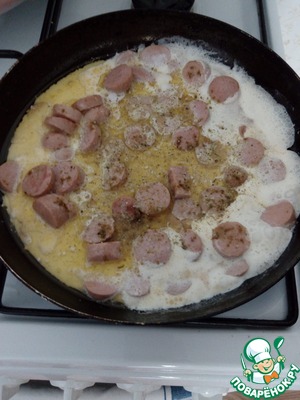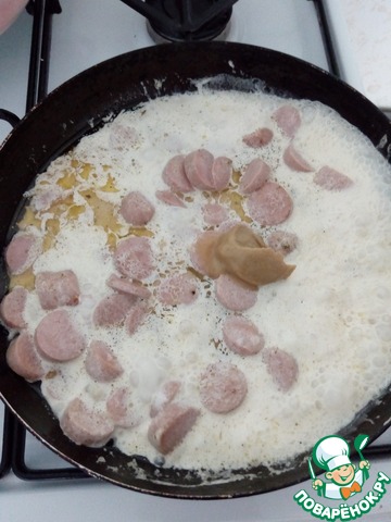 Затем вводим сливки, хмели-сунели, соль, петрушку. Готовим на маленьком огне.