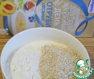 Всыпать муку с разрыхлителем и овсяные отруби.