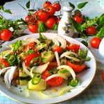 Танечка, слов нет, какой вкуснейший получился салат из зимних пластмассовых помидор! Очень вкусно и оригинально. Орешков добавила чуть побольше. Базилика не нашлось, украсила рукколой! Забираю с огромной благодарностью на постоянное пользование! В сезон буду частенько повторять! Спасибо огромное за вкуснейший рецепт!