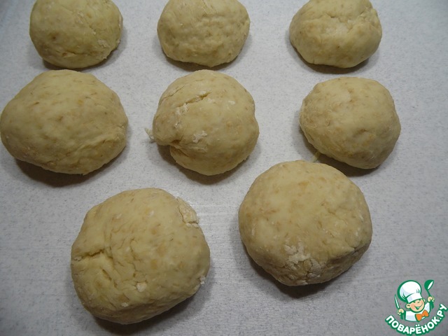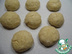 Тесто разделить на 8-10 частей, каждую часть скатать в шарик.