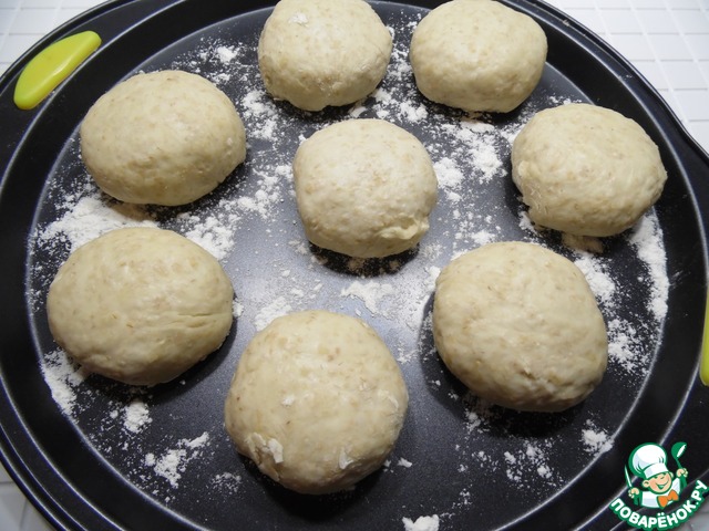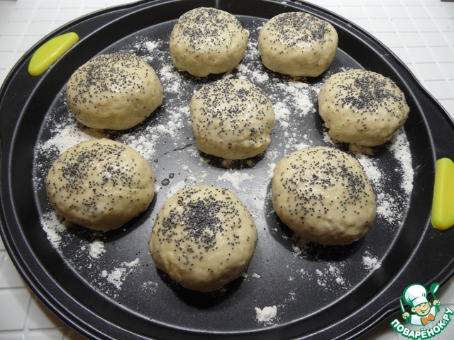 Сформировать булочки, выложить их на присыпанный мукой противень.