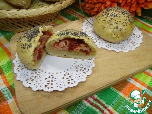 Рецепт «Булочки с сырно-ветчинной начинкой»: