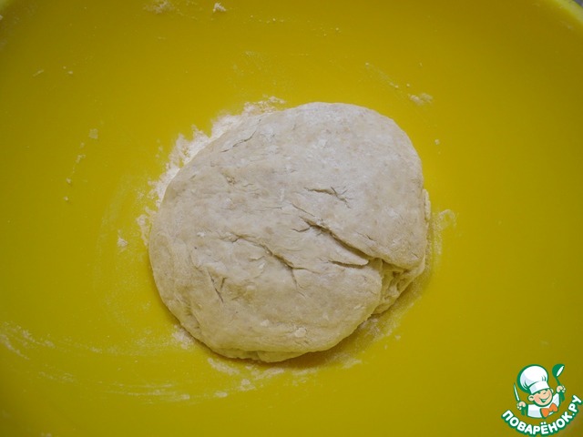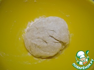 Замесить эластичное тесто, которое не прилипает к рукам. Скатать в шар, накрыть полотенцем и оставить при комнатной температуре на 10-15 минут.