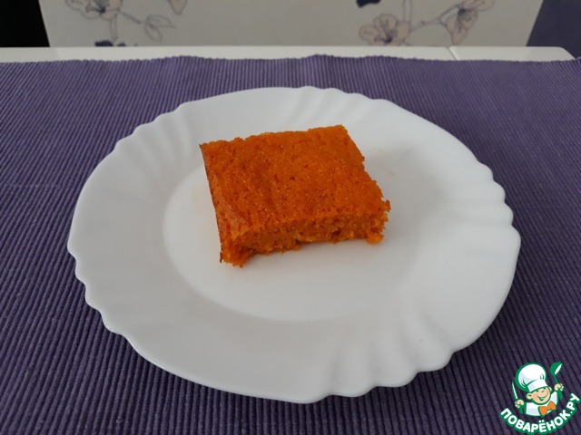 Достаем из духовки. Опять мой коммент: если вы намереваетесь вынуть манник из формы - следует постелить бумагу для выпечки так, чтобы его можно было поднять за края. Он абсолютно не пристал, но целиком не вынимался.