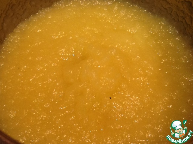 По Поскребышевой размягченные горячие яблоки следовало протереть через сито, я просто пробила блендером. Нам нужно сделать пюре.