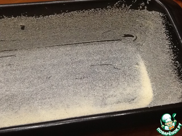 Форму для кексов (у меня 10*30) смазываем маслом и присыпаем манкой.